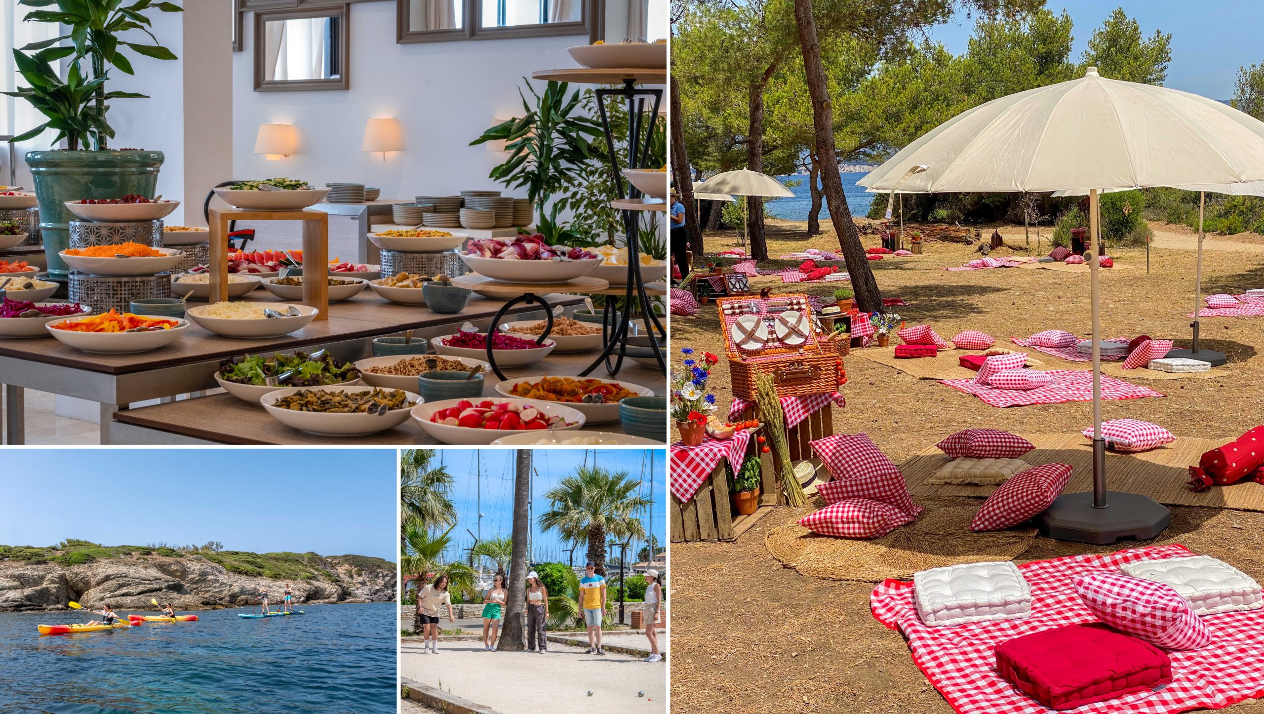 Nature et convivialité en pinède : profitez d’une expérience conviviale dans l’esprit d’un pique-nique sous les pins, avec la mer comme toile de fond.