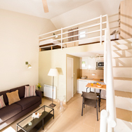 Take height by choosing this apartment with a mezzanine bedroom, a living room with a sofa bed and fully-equipped kitchenette ideal for preparing meals to enjoy on the beautiful sunny terrace.