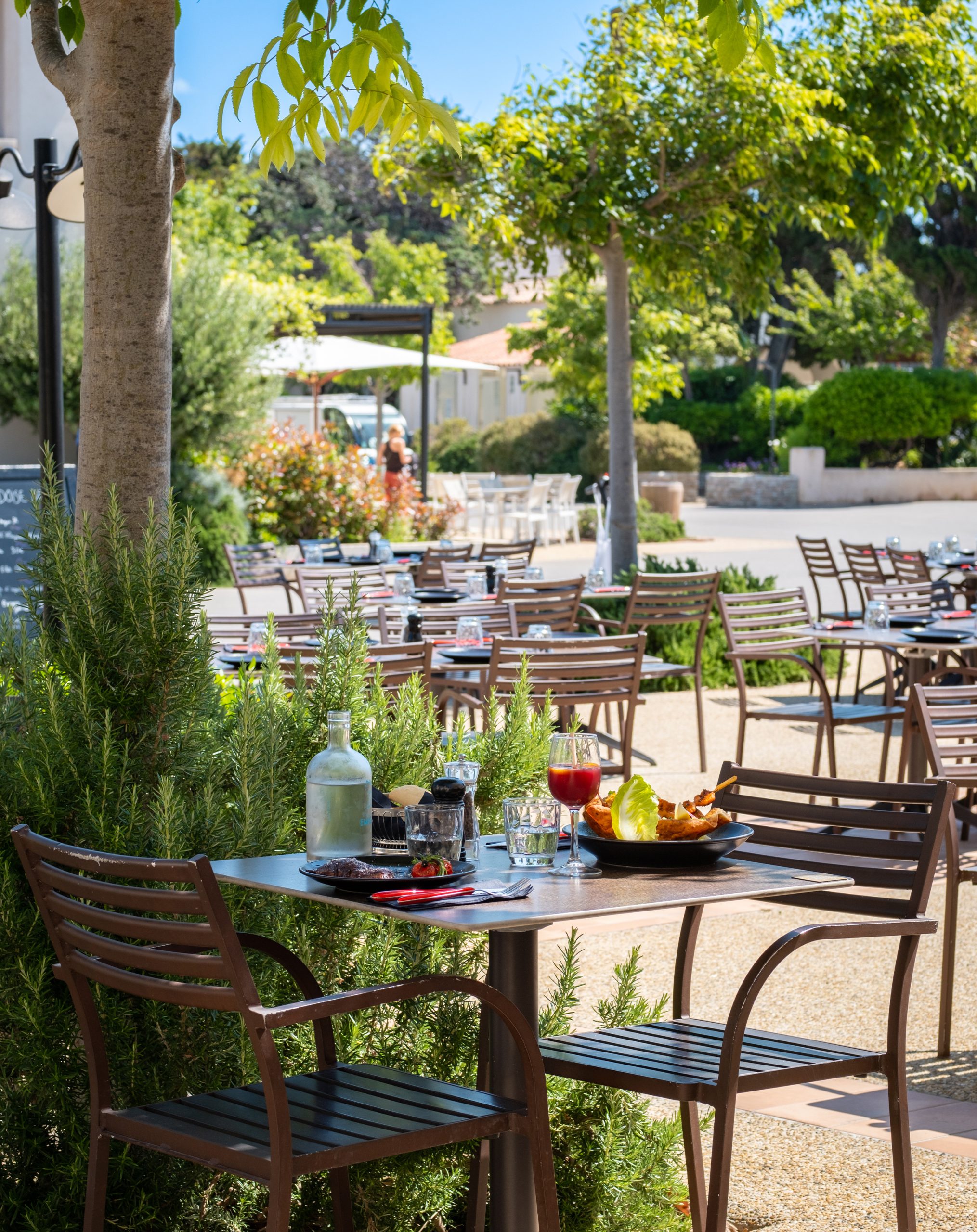 Situé sur la place centrale de l’île, théâtre de nombreuses animations estivales, notre équipe vous reçoit dans un cadre chaleureux, installé confortablement sur la terrasse ombragée.
